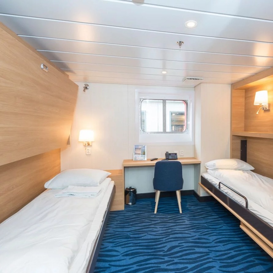 Our Polar outside cabins are situated mostly on the middle∘ or lower decks and all have bathrooms with shower/WC. These comfortable outside cabins for up to three people on the middle deck have separate beds and bathrooms with shower/WC. The cabins have limited or no view.