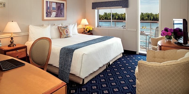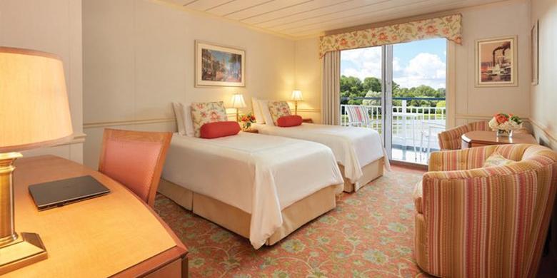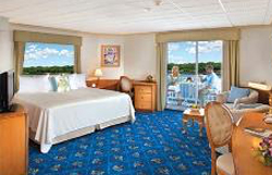 SB1 staterooms can be found on the second deck of the American Pride. Enjoy a luxurious 304 sq. ft. of living space that is equipped with plush seating, full-size bathrooms, and a private balcony with large opening picture window.