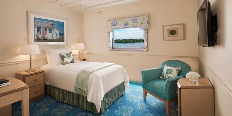 A comfortable getaway, our Single suites offer individuals a spacious room with convenient amenities. At 203 sq. ft., these staterooms have interior entrances and large opening windows where the sights of the Pacific Northwest can be enjoyed.