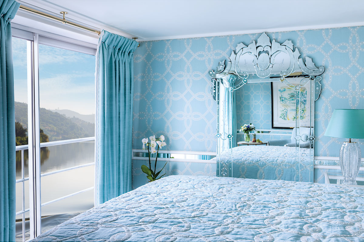 Lavishly appointed riverview stateroom (151 sq ft - 14 sq m)Handcrafted Savoir® Beds of England, built-in closet, hair dryer, safe, individual thermostat, flat-screen TV with infotainment∘ centre and satellite, and bottled waterMarble bathroom with Asprey bath and body products, plush towels, waffle bathrobes, and slippers